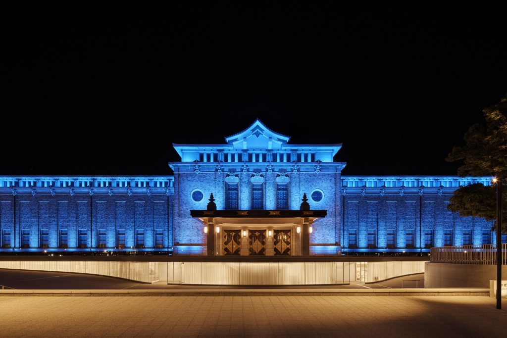 In conjunction with renewal, the main building façade was fitted with lighting installed to permanently illuminate the Okazaki night landscape. Normally, lighting would be color coordinated with seasonal changes following the ancient 24 season calendar (24 Sekki 24節気), each ‘season’ lasting 15 days. Joining the initiative of buildings and facilities throughout the world to use blue illumination to honor medical staff at the forefront of the Covid-19 outbreak, the Kyoto City KYOCERA Museum of Art illumination will be in blue for the opening on May 26, 2020.