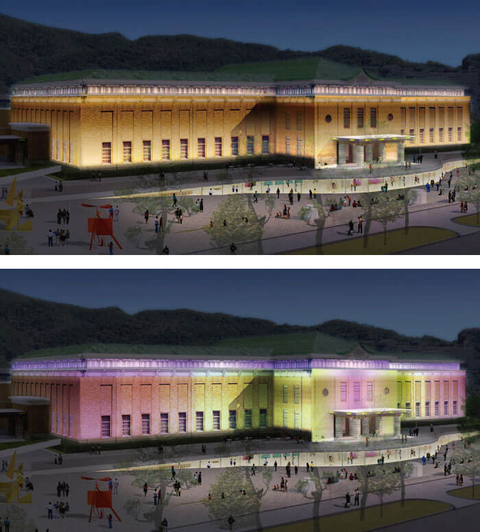 建築の様式美を白色光で表現するとともに、一定時間ごとに二十四節気で変化する演出が加わり、美しい四季折々の景観とともに愛されてきた美術館に、新たに夜景の魅力が加わります。