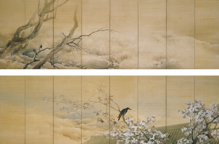 菊池芳文《春の夕・霜の朝》1903年 上:左隻 下:右隻 -