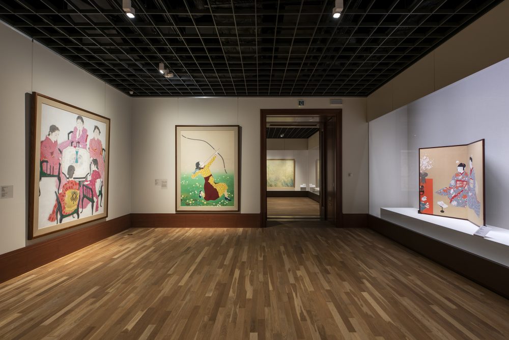 コレクションルーム:春期 展示風景 撮影:福永一夫 当館は開館以来、近代以降の「京都の美術」を収集してきました。現在までに、3700点を越える総合的なコレクション(日本画、洋画、彫刻、版画、工芸、書)を形成していますが、とくに明治から昭和にかけての京都画壇の作家たちによる作品群には、近代の日本画を代表する名品が揃い、自他ともに認める優れたコレクションとなっています。