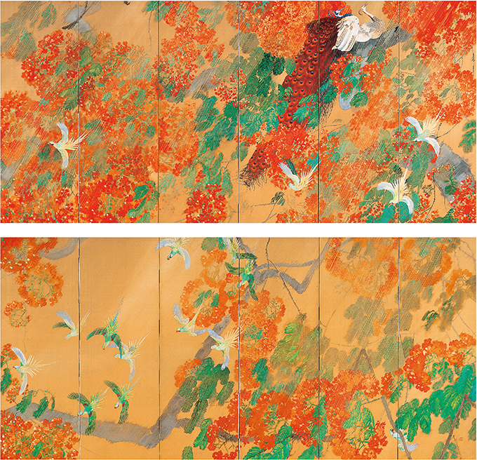 《燦雨》1919年 石崎光瑤 南砺市立福光美術館蔵 上:左隻 下:右隻 ◎前期展示