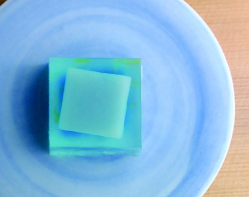 展示作品をイメージした和菓子は、5層のレイヤー構造。柚子やレモン、白味噌を使った冬季でもお楽しみいただける錦玉羹です。期間限定で、ミュージアムカフェENFUSEでお楽しみいただけます。