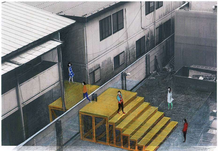 灰原千晶、李晶玉 《区画壁を跨ぐ橋のドローイング》 2015年 パープルーム(2013~、神奈川)
