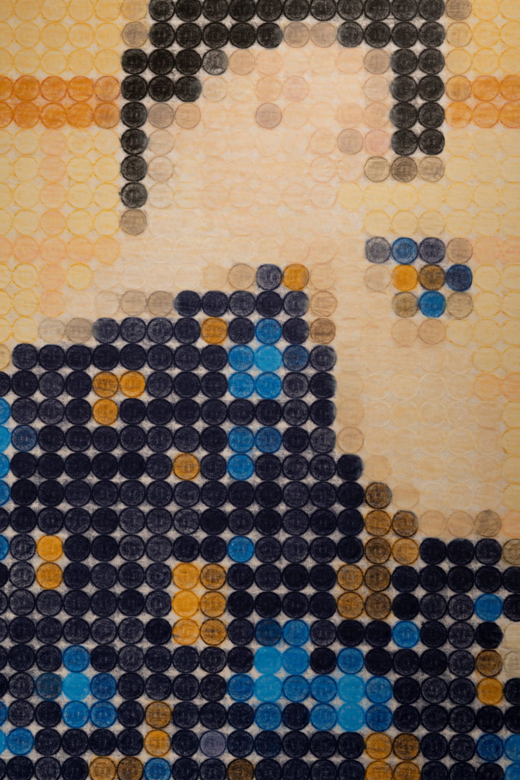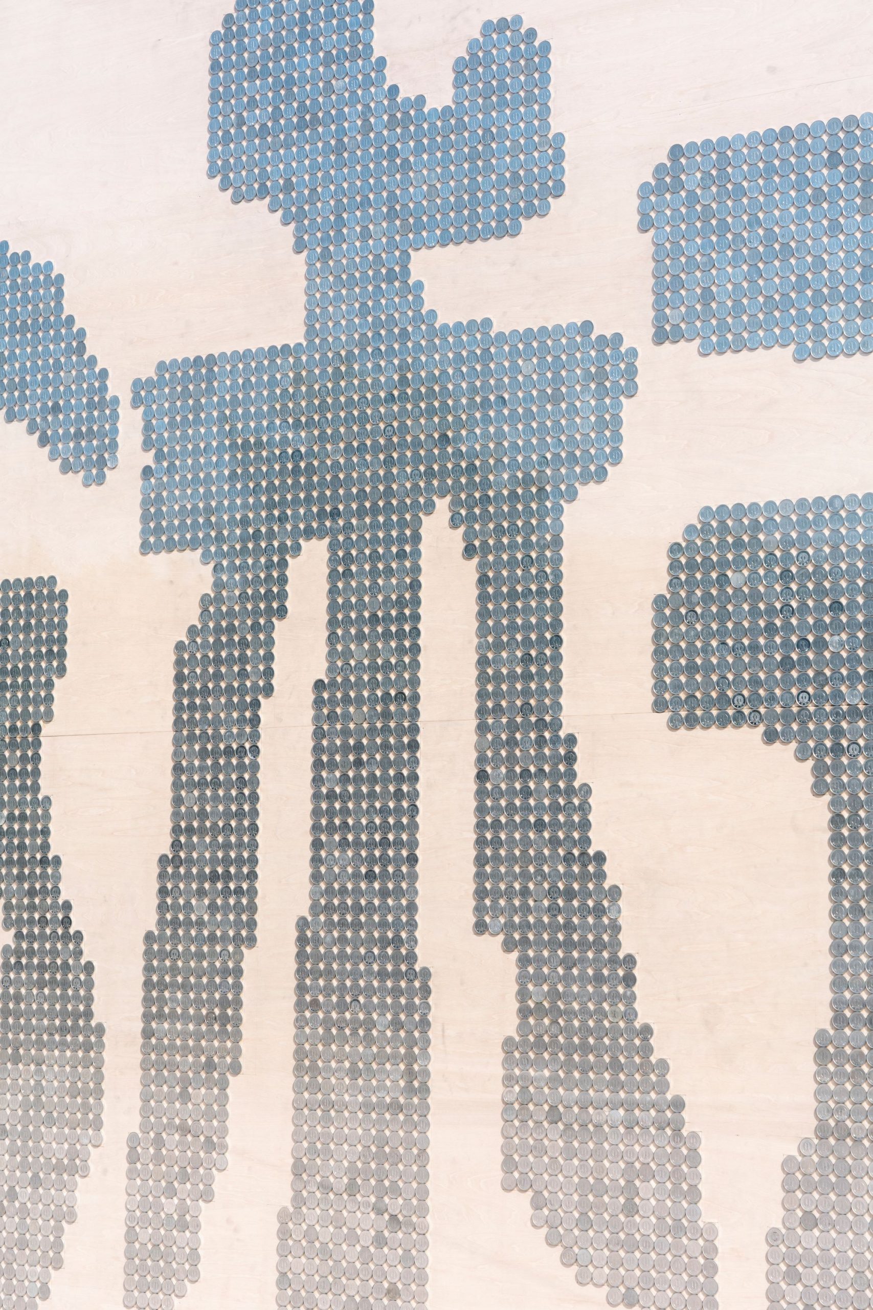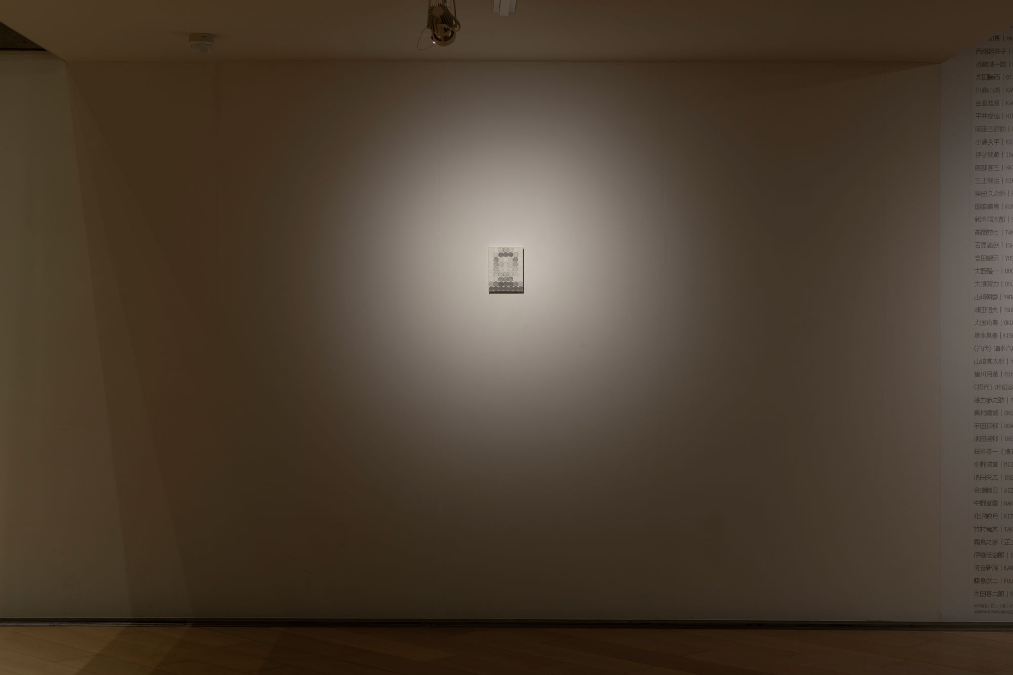 山本雄教《4050円の女》2023年 写真:守屋友樹 山本雄教は、日本画の研究を通して学んだ技法や素材を応用し、米粒の線描やブルーシートを素材としたインスタレーションなどを制作しています。一円硬貨を用いた作品群では、小さく身近な存在である硬貨が、現代社会における貨幣と美術作品の関係性といった大きなものにまで繋がるという、ミクロとマクロを交錯させる試みを展開してきました。