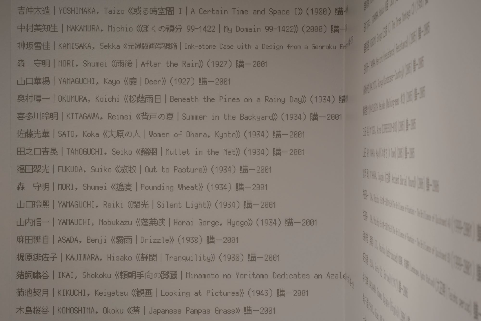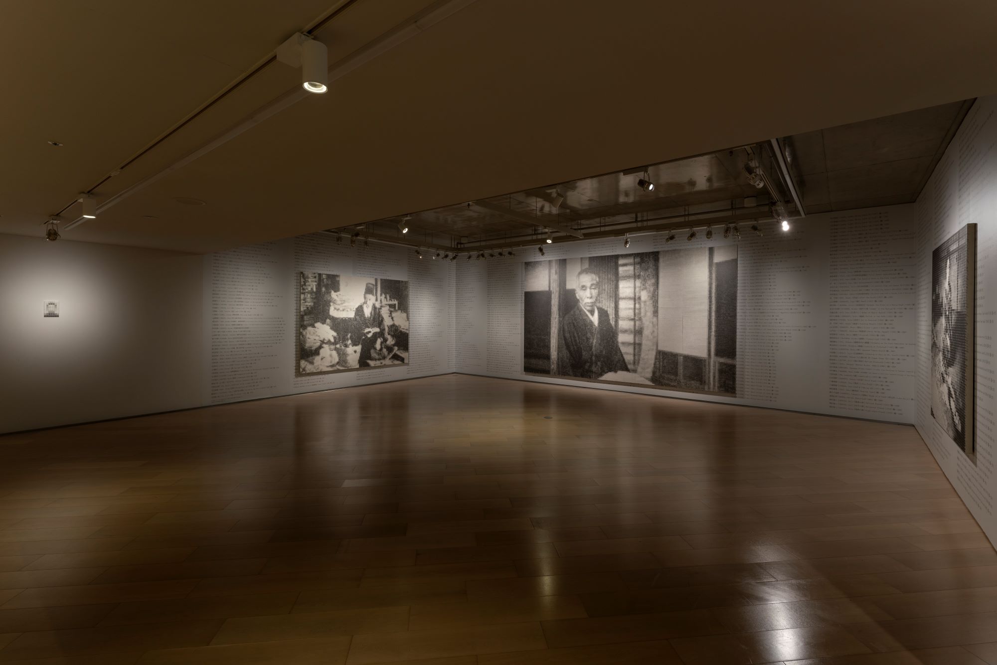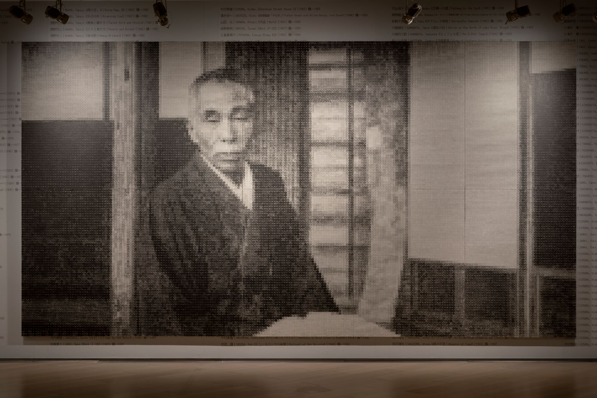 本展では、麻紙の下に一円硬貨を敷き詰め、当館所蔵作品やその作家である近代日本画の巨匠たちの肖像を鉛筆のフロッタージュで描き出す大型の新作を含む7点を発表します。この肖像をモチーフにした作品のサイズは、描かれた画家たちの作品が仮に美術市場に出された場合の想定価格によって規定され、価格が高ければ高い程大きく鮮明に表されます。時代を経て、彼らに相対するように展示される山本自身の自画像も例外ではなく、この皮肉めいたルールに従って小さく不鮮明に描き出されます。このような創作過程を通して、山本は所蔵作品も含め美術作品が経済活動と切り離せない事実を、美術館の歴史の背後に読み取ろうとしています。