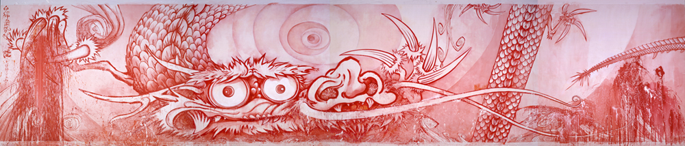 村上隆 雲竜赤変図《辻惟雄先生に「あなた、たまには自分で描いたらどうなの?」と嫌味を言われて腹が立って自分で描いたバージョン》 2010年 アクリル、カンヴァス 363×1800cm