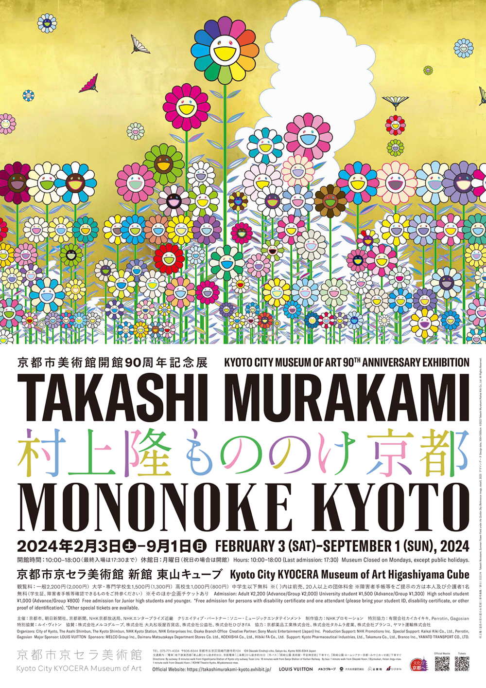 御寄付により、京都市美術館開館90周年記念展『村上隆 もののけ 京都』について、京都市在住の学生もしくは京都市内の学校に通学している学生の入場料を無料とします。