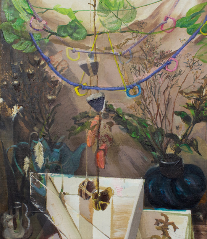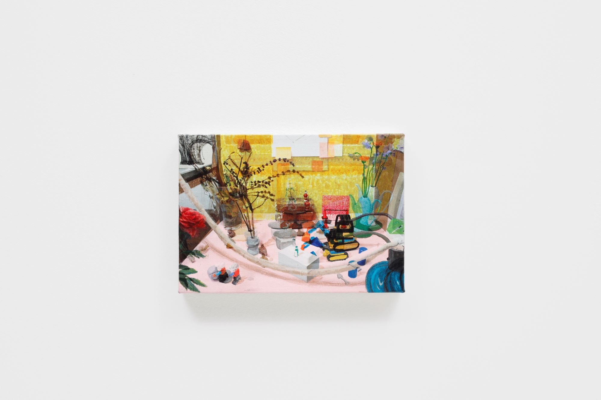 本展では、嶋自身が「庭」と呼ぶ自作の模型をモチーフとした新作絵画を手がけます。この「庭」に配置される植物や石、収集した骨董品や用途を失った道具、自作のオブジェなど様々なものは、作家との間にそれぞれ関係性をもちながら、それら自体は徐々に変化し、時に朽ちていく存在として「庭」を構成します。