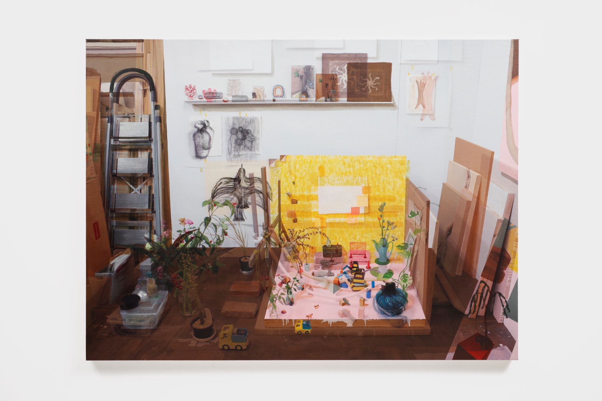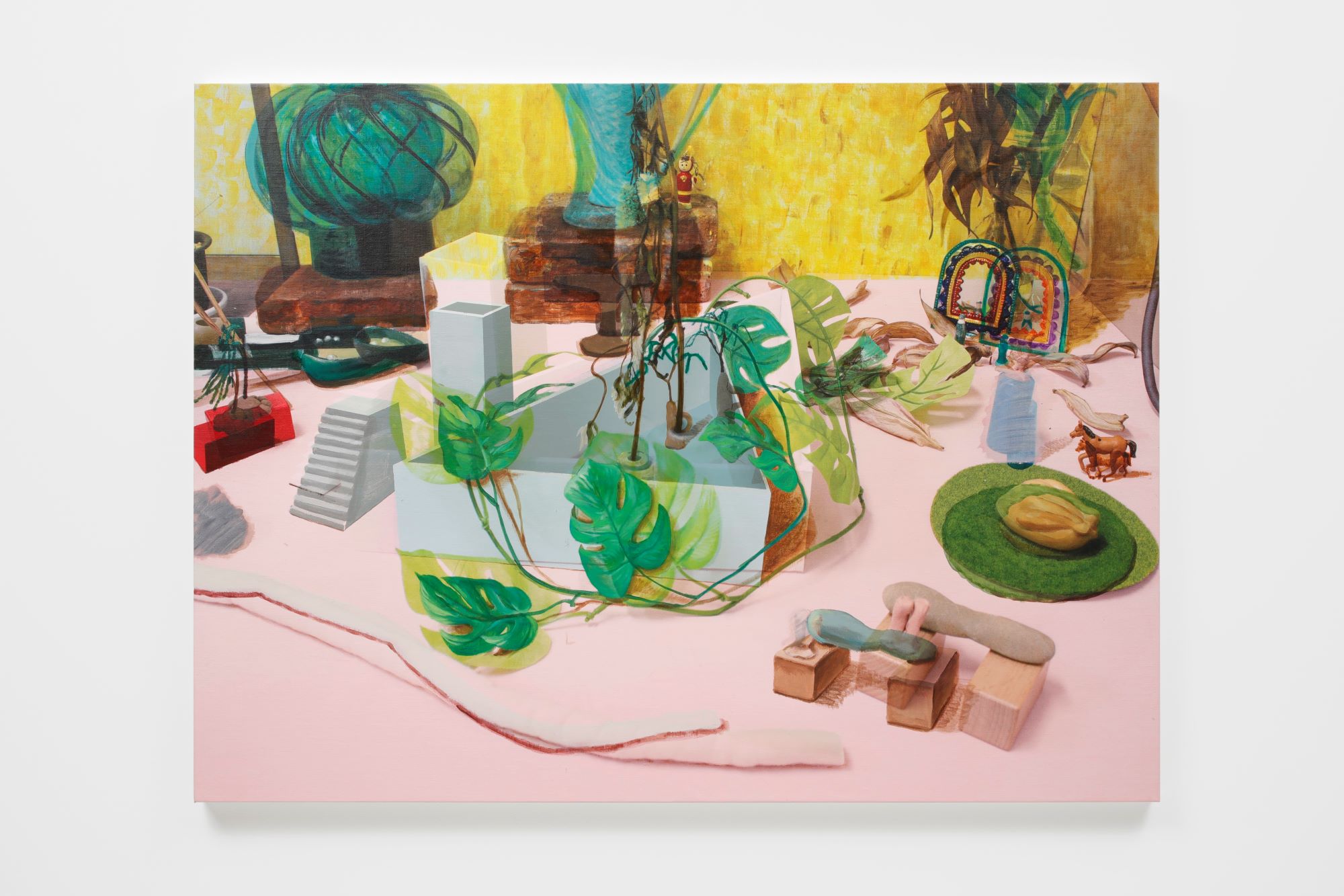 嶋春香《移ろいの庭 scene #1》2024年 嶋春香は、人と図像との関わりをテーマに、さまざまな時代や文化の道具が写った資料写真をモチーフに作品を制作してきました。