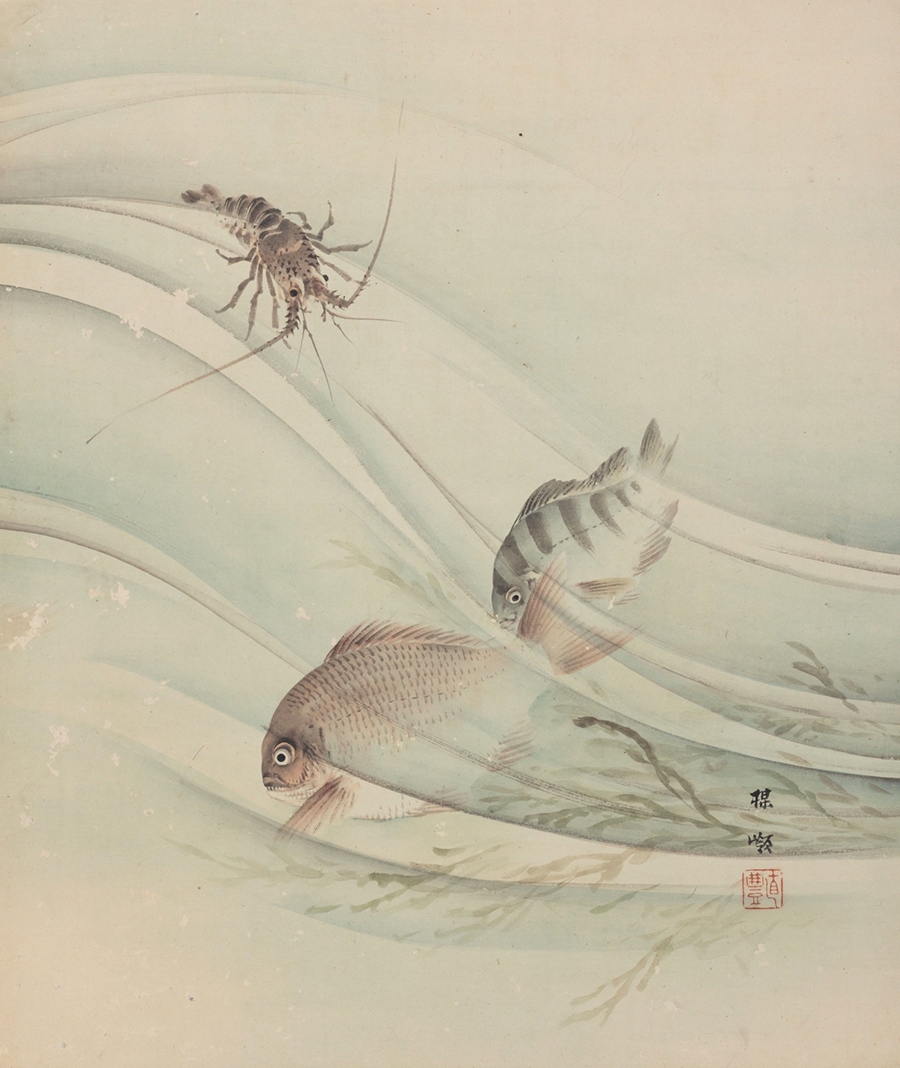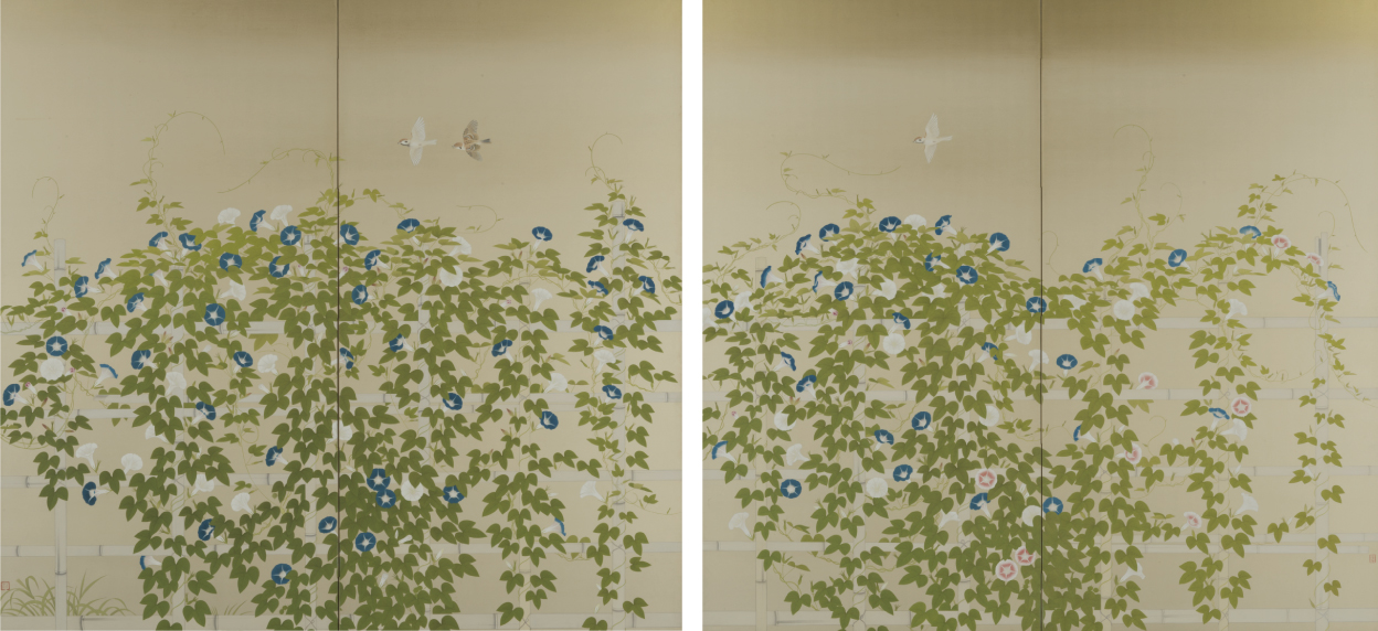 幸野楳嶺《花鳥山水貼交屏風》(部分)明治期