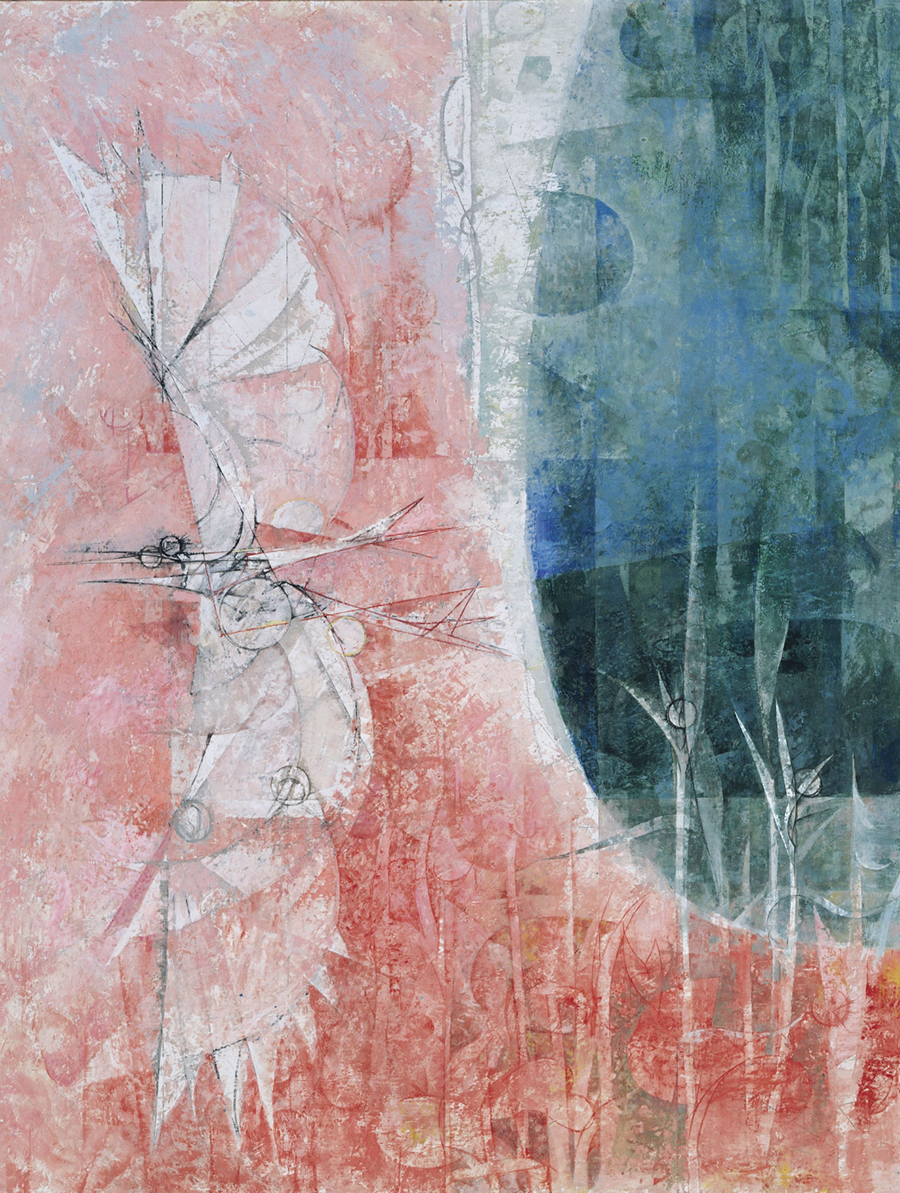 下村良之介《池畔》1957年 京都市美術館蔵 伝統的な日本画の枠組みを再考し、新機軸の芸術を生み出そうとしたのは、勢いのある若い世代でした。