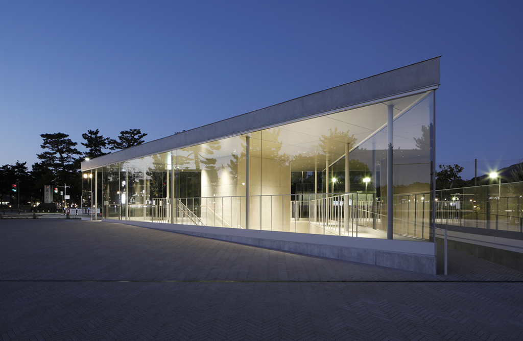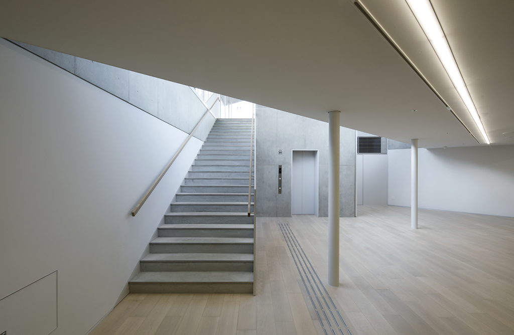 敷地の北西の角の地下1階には、新進作家を中心に発信するスペース「ザ・トライアングル」を新設しました。地上部分の形状が三角形であること、また、「作家・美術館・世界(鑑賞者)」の3者を結ぶ拠点となることから「ザ・トライアングル」と名付けました。この軽やかな三角形を通して様々なアート作品がまちへと発信されます。地上からも、地下1階からもアクセスが可能です。