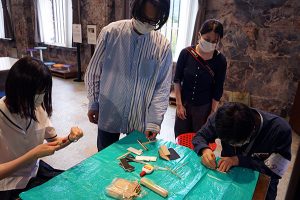 13日は、開催中の「THEドラえもん展KYOTO2021」に合わせて「アイスの棒でタケコプターを作ってみる」という案を考えてきてくださり、その際に必要になる道具も持ってきてくださいました。集った人々と、「この道具はもう少しこういうやつがあるといいね」とか「美術館って造形教育はしないの?」とか、具体的な作業や物を通じて話し合うことができました。